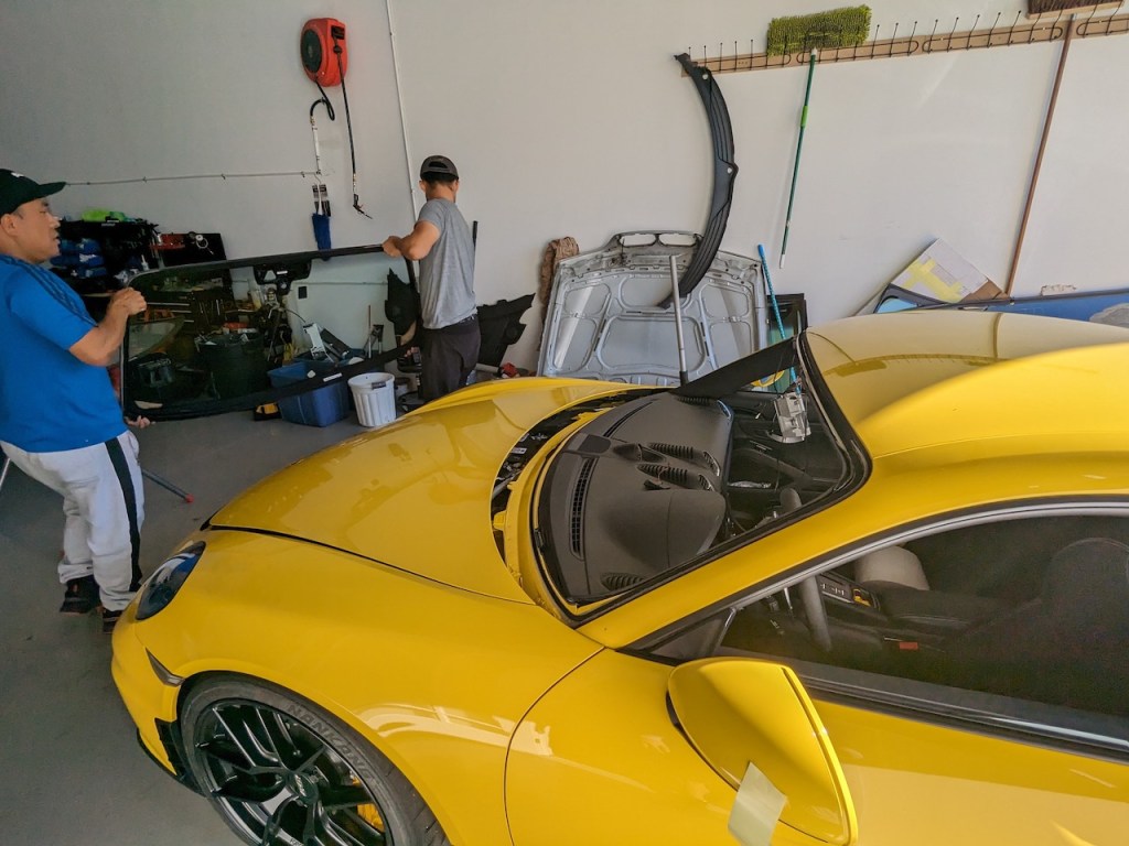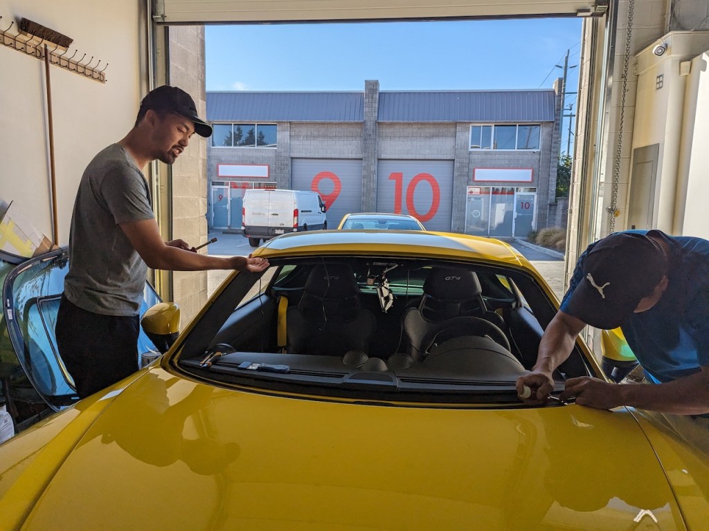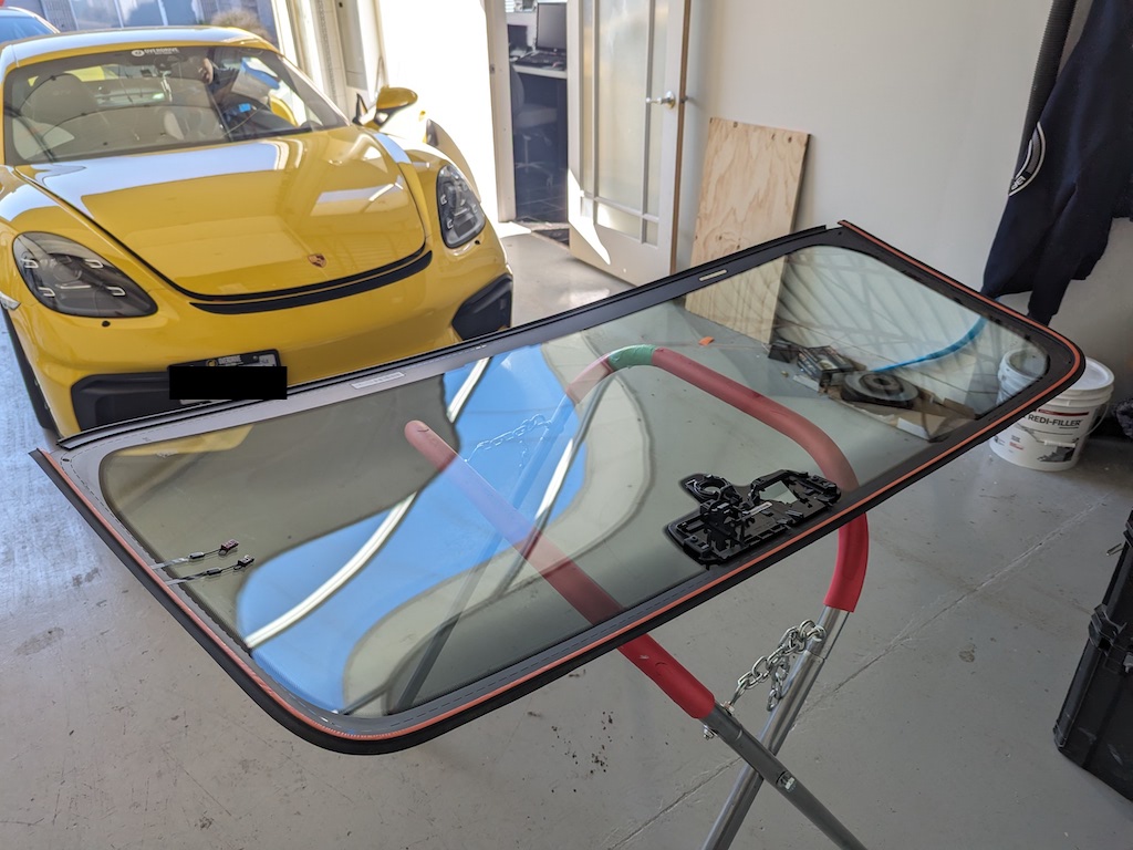 As with any track oriented car, rock chips and various debris at high speed is expected. After just a year of ownership, this GT4 received a decent size rock chip on the top driver’s side which immediately spread into a crack. Because of the spread this windshield could not simply be repaired. And as this car is used on track, the crack is a liability and would not pass any legitimate organizer’s track day inspection.