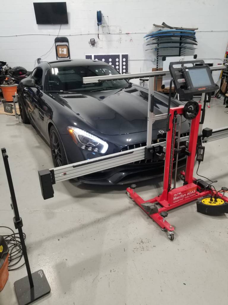 Additionally, as this vehicle has various safety systems integrated to the windshield sensor, specialty equipment is required to recalibrate the car. We have our in-house Autel MaxiSys ADAS calibration machine to restore all these safety functions and ensure functionality.
